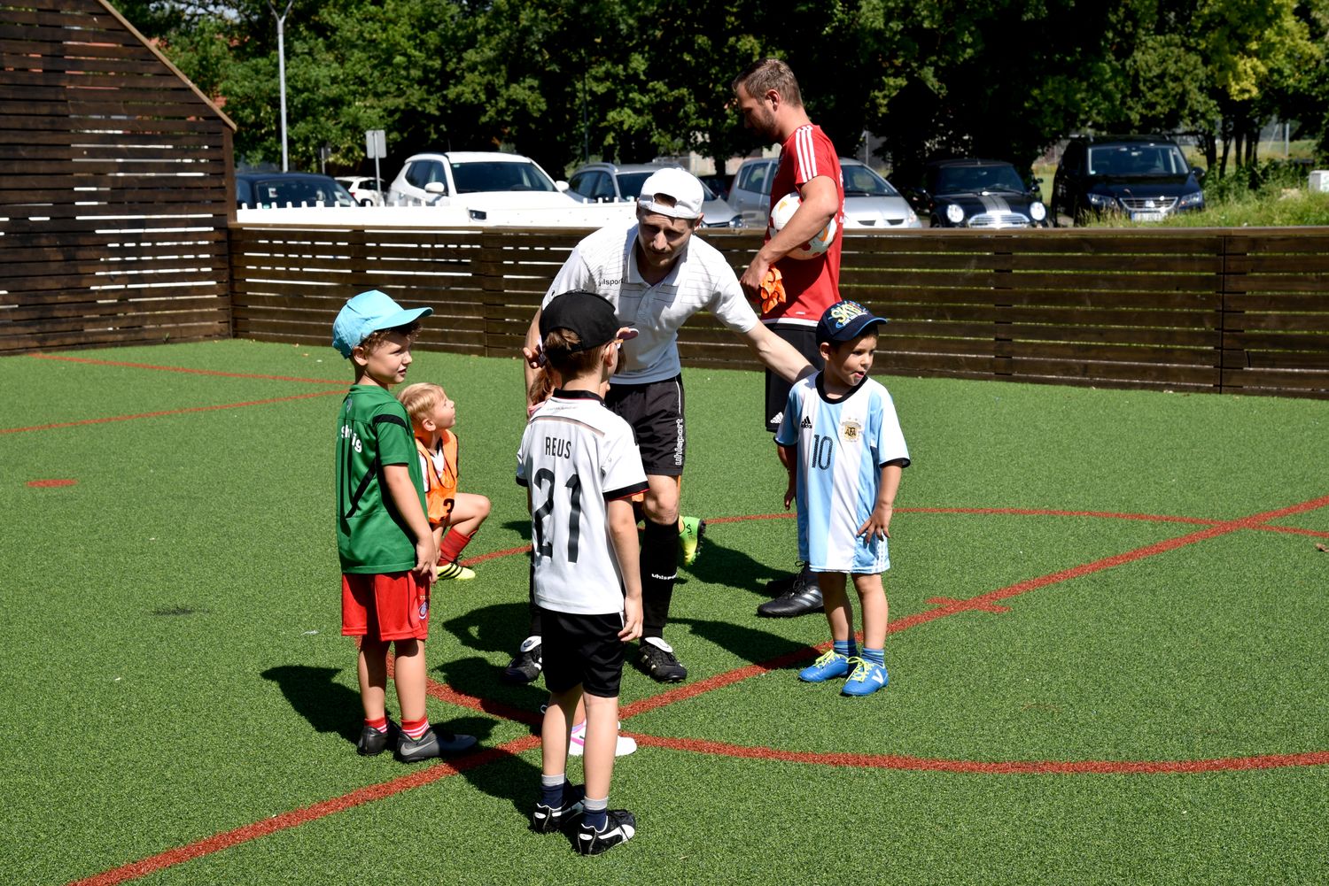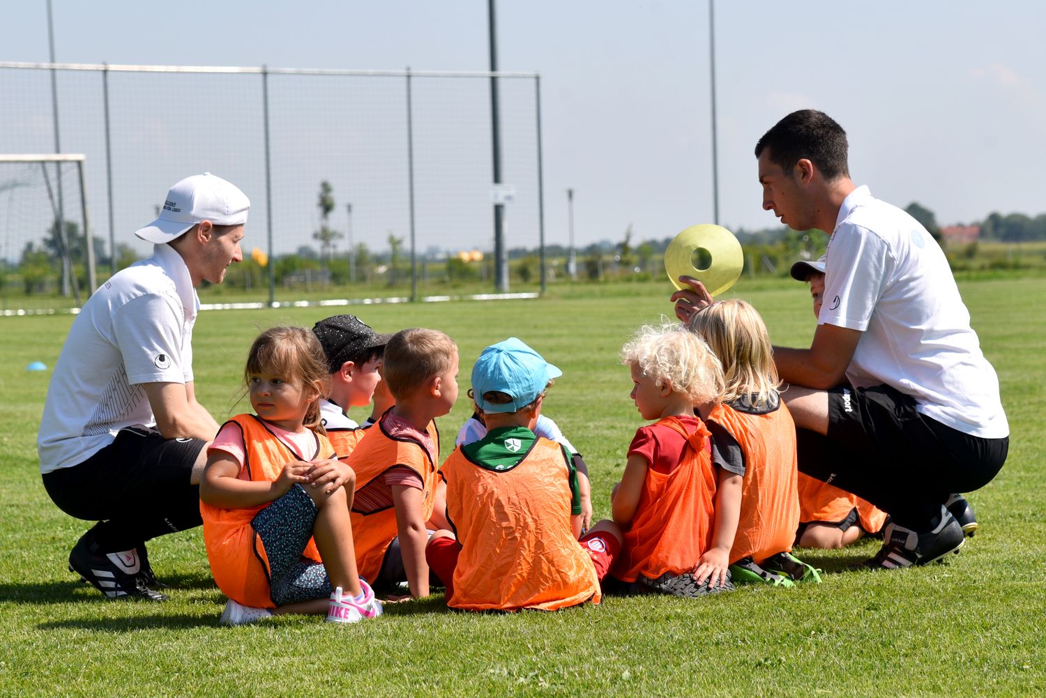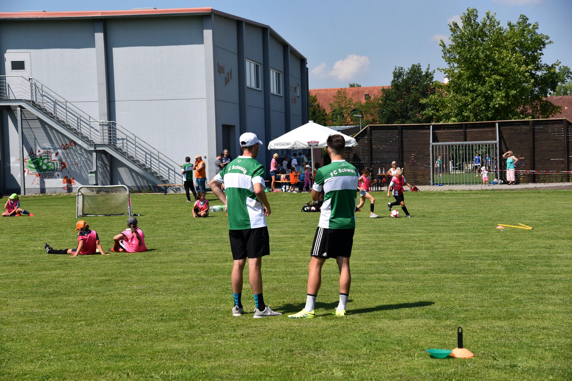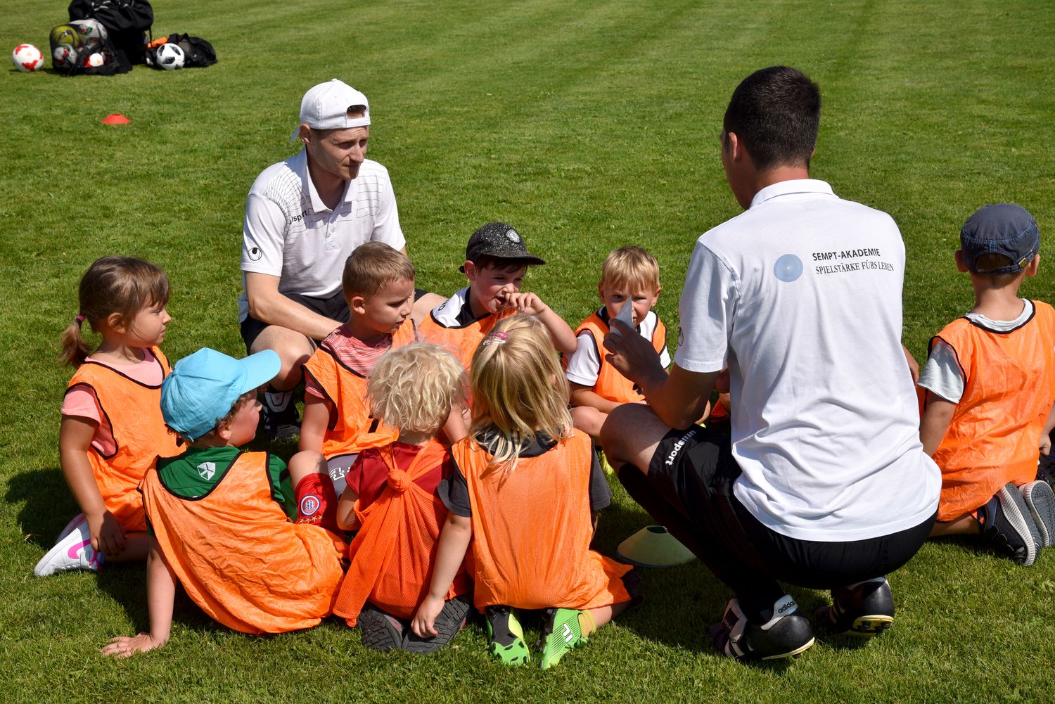 Dabei sollte Kindern unter 10 Jahren die Möglichkeit geboten werden zwanglos an einem Schnuppertraining unter Leitung von erfahrenen Trainern teilzunehmen und so die Freude am Fussball zu finden. Insgesamt 48 Kinder fanden sich ein und unser Trainerteam um Alfredo Sansone, Kevin Krust und Alexander Weiher, sowie den Trainern Stefan Haberl, Sebastian Zitzelsberger von der Sempt Akademie Erding unter Leitung von Michael Schöttner hatten ein tolles Trainingsprogramm vorbereitet. Entsprechend aufgeteilt in 4 Gruppen konnten die Kids am vormittag das Schnuppertraining absolvieren.