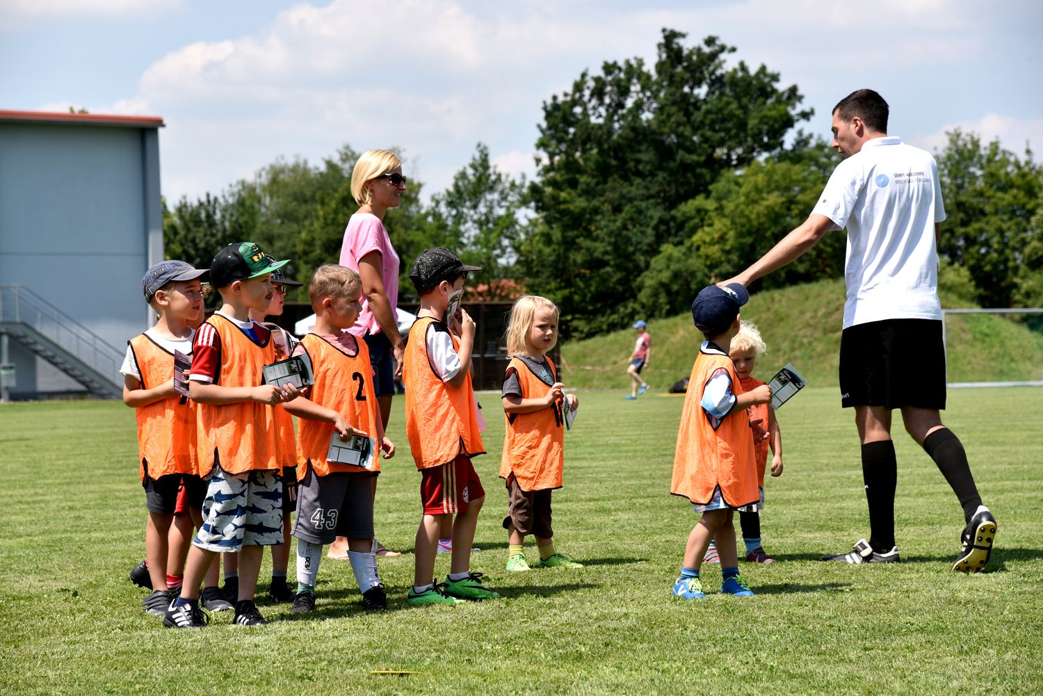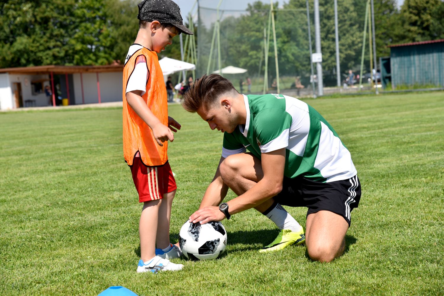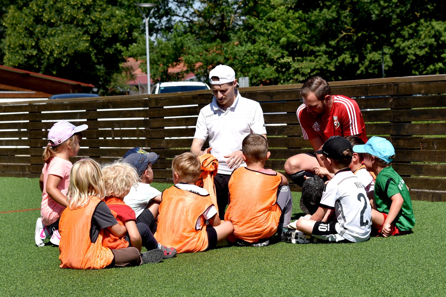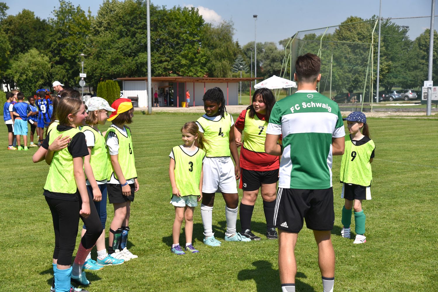Dabei sollte Kindern unter 10 Jahren die Möglichkeit geboten werden zwanglos an einem Schnuppertraining unter Leitung von erfahrenen Trainern teilzunehmen und so die Freude am Fussball zu finden. Insgesamt 48 Kinder fanden sich ein und unser Trainerteam um Alfredo Sansone, Kevin Krust und Alexander Weiher, sowie den Trainern Stefan Haberl, Sebastian Zitzelsberger von der Sempt Akademie Erding unter Leitung von Michael Schöttner hatten ein tolles Trainingsprogramm vorbereitet. Entsprechend aufgeteilt in 4 Gruppen konnten die Kids am vormittag das Schnuppertraining absolvieren.